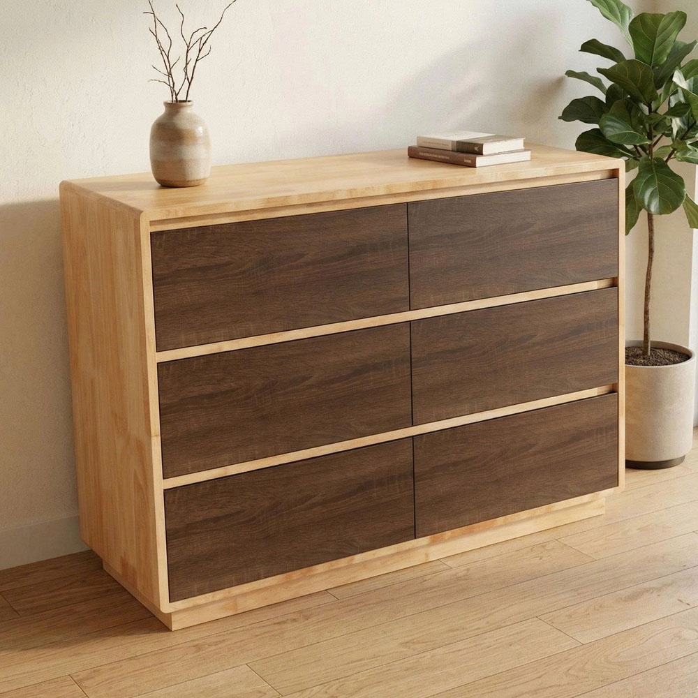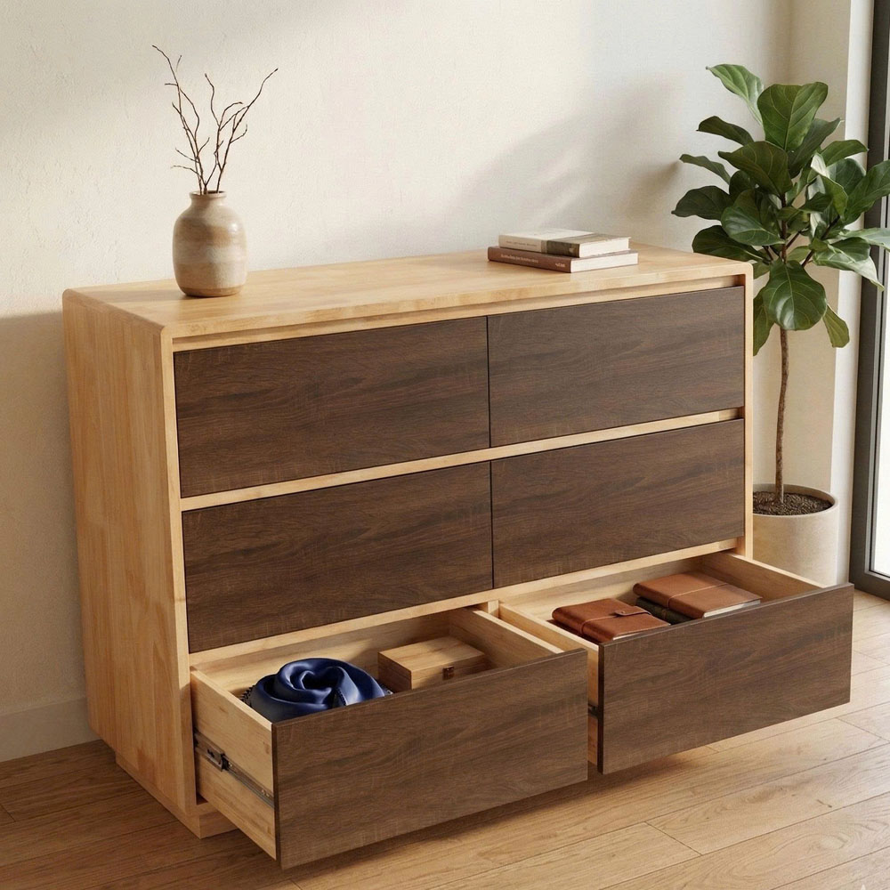 Tủ 6 hộc kéo 100x40x75cm gỗ cao su phối cửa plywood KTB68269