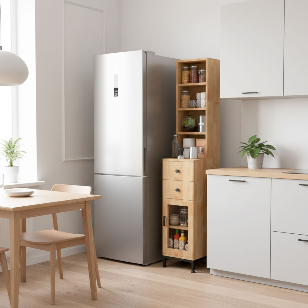 Tủ bên hông tủ lạnh 30x40x170cm gỗ cao su TBTL001