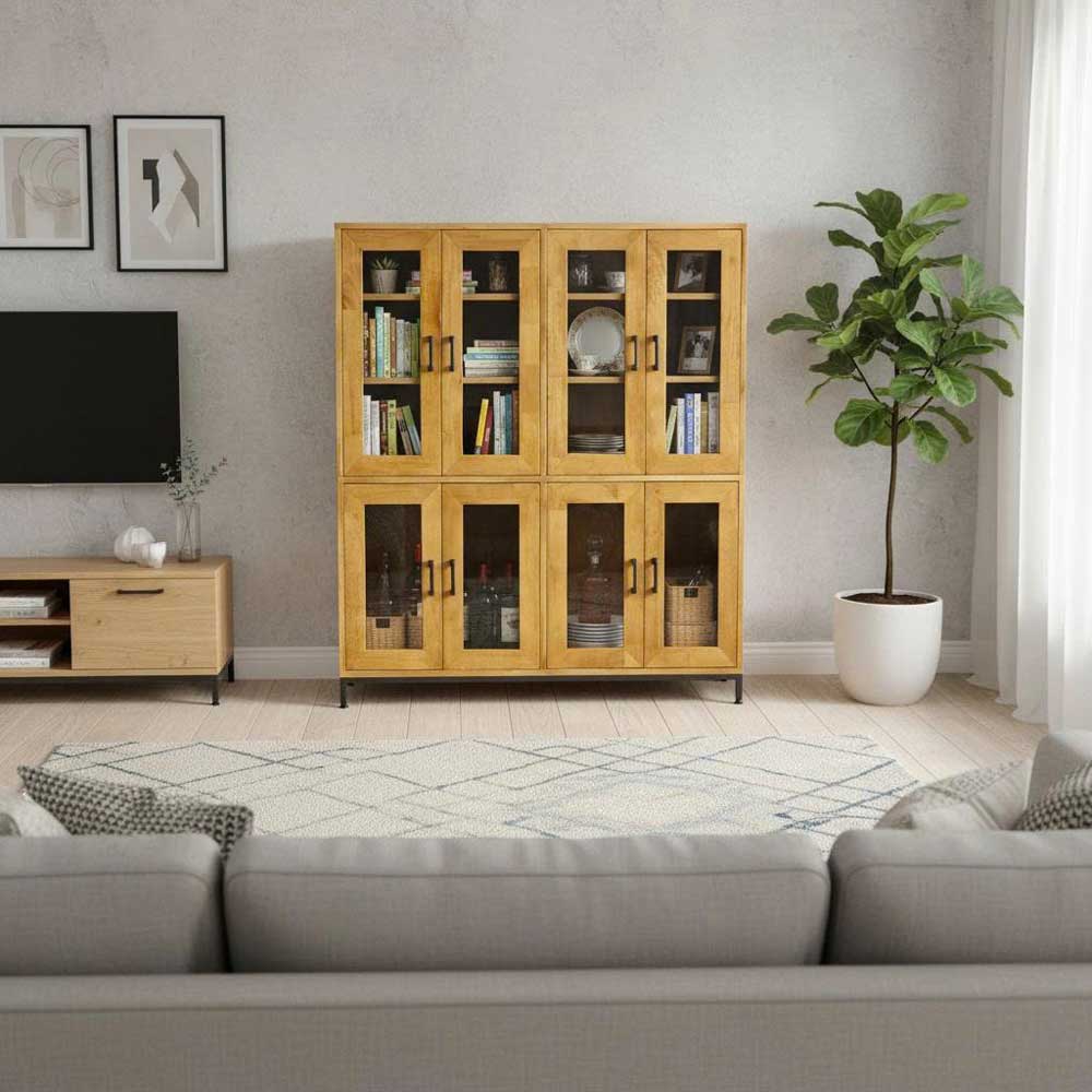 Tủ cửa kính 120x40x140cm gỗ cao su KTB68237