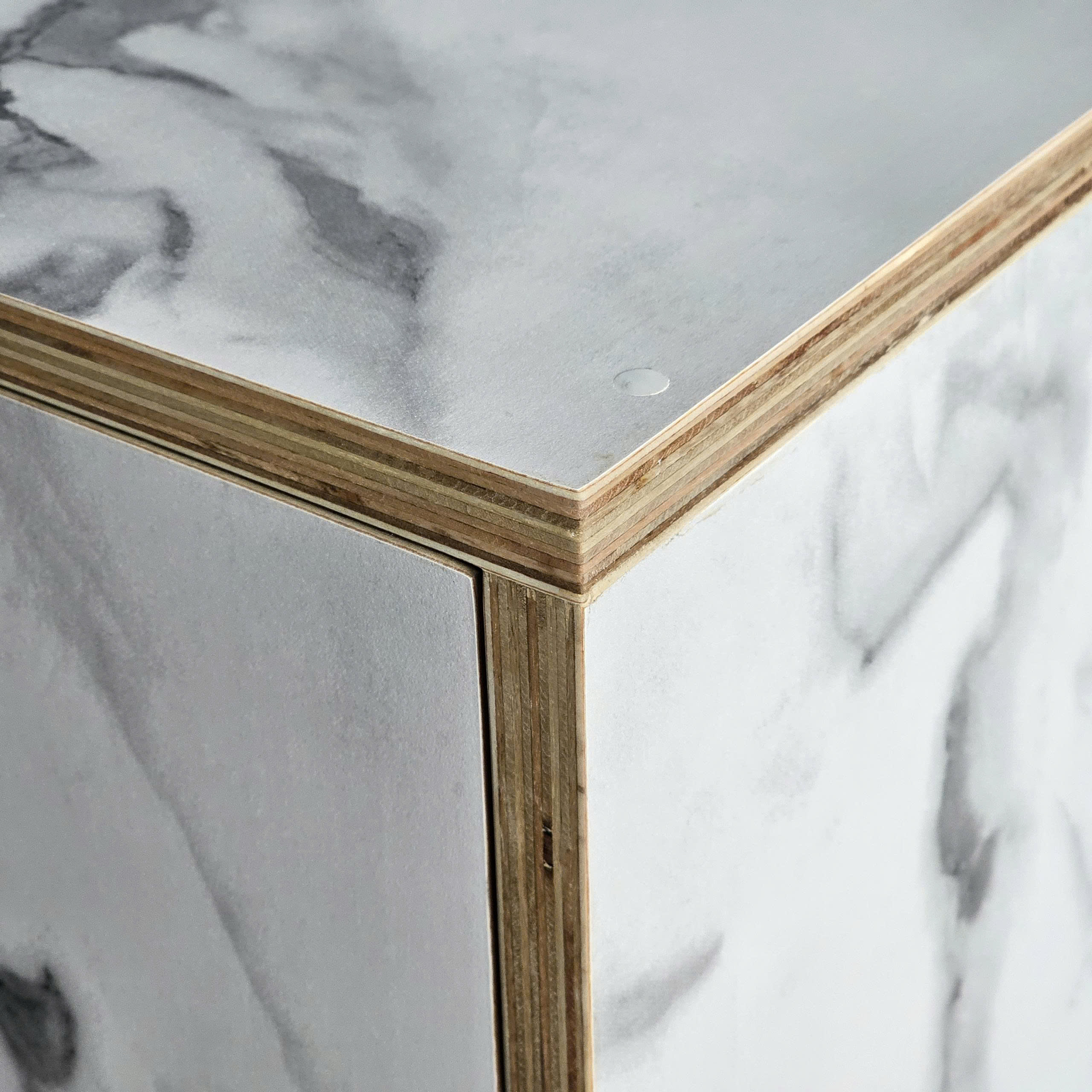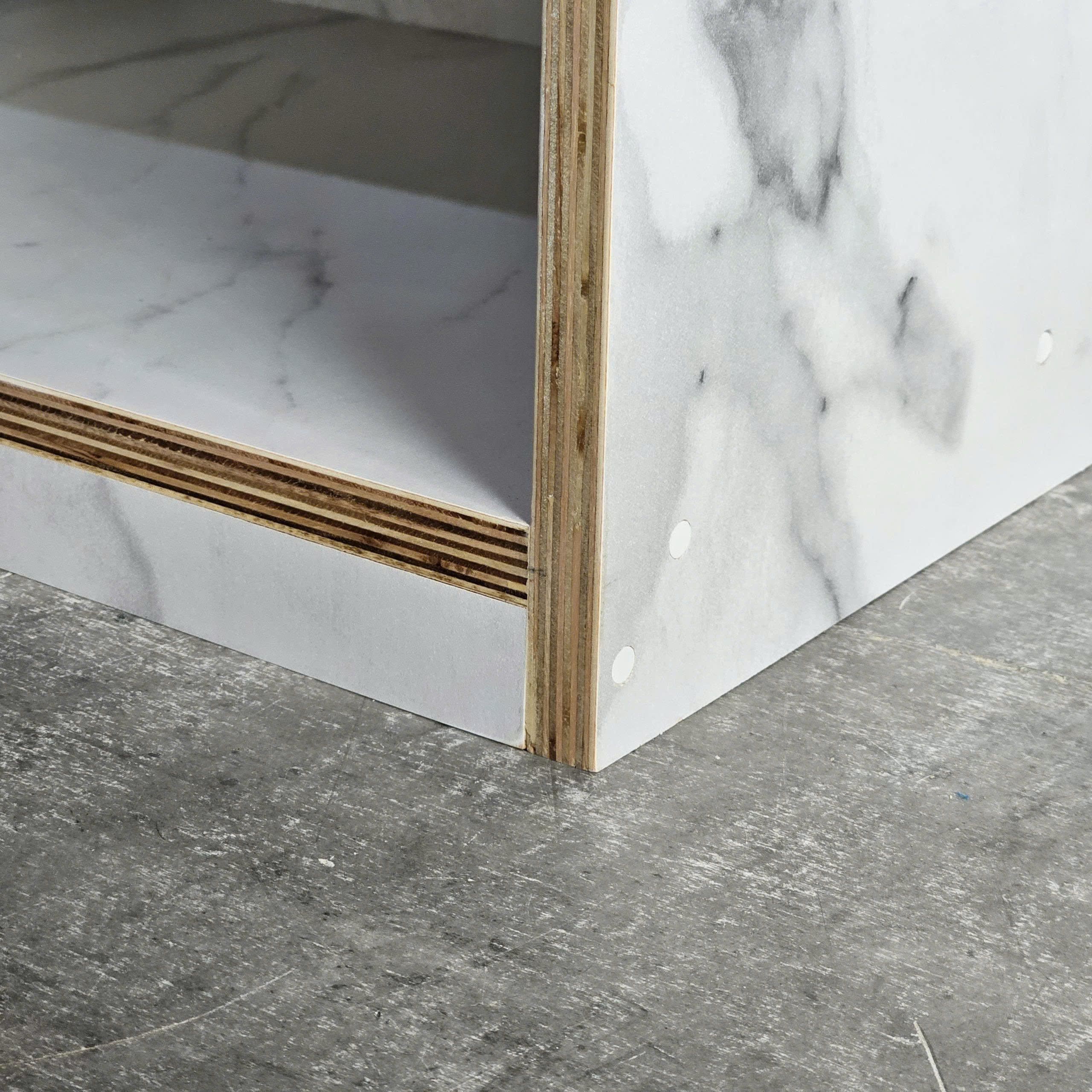 - Chất liệu : Gỗ Plywood phủ melamin dày 18mm, đã xử lý chà nhám mịn màng và chống thấm nước.