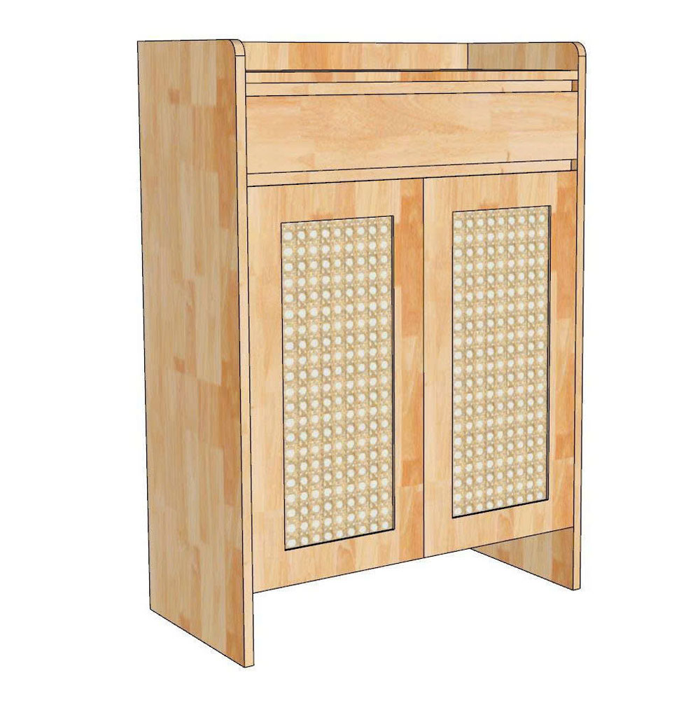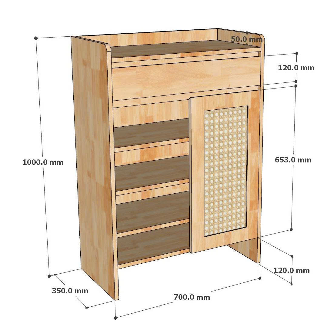 Tủ để giày dép cửa lưới mây 70x35x100cm gỗ cao su KG68121