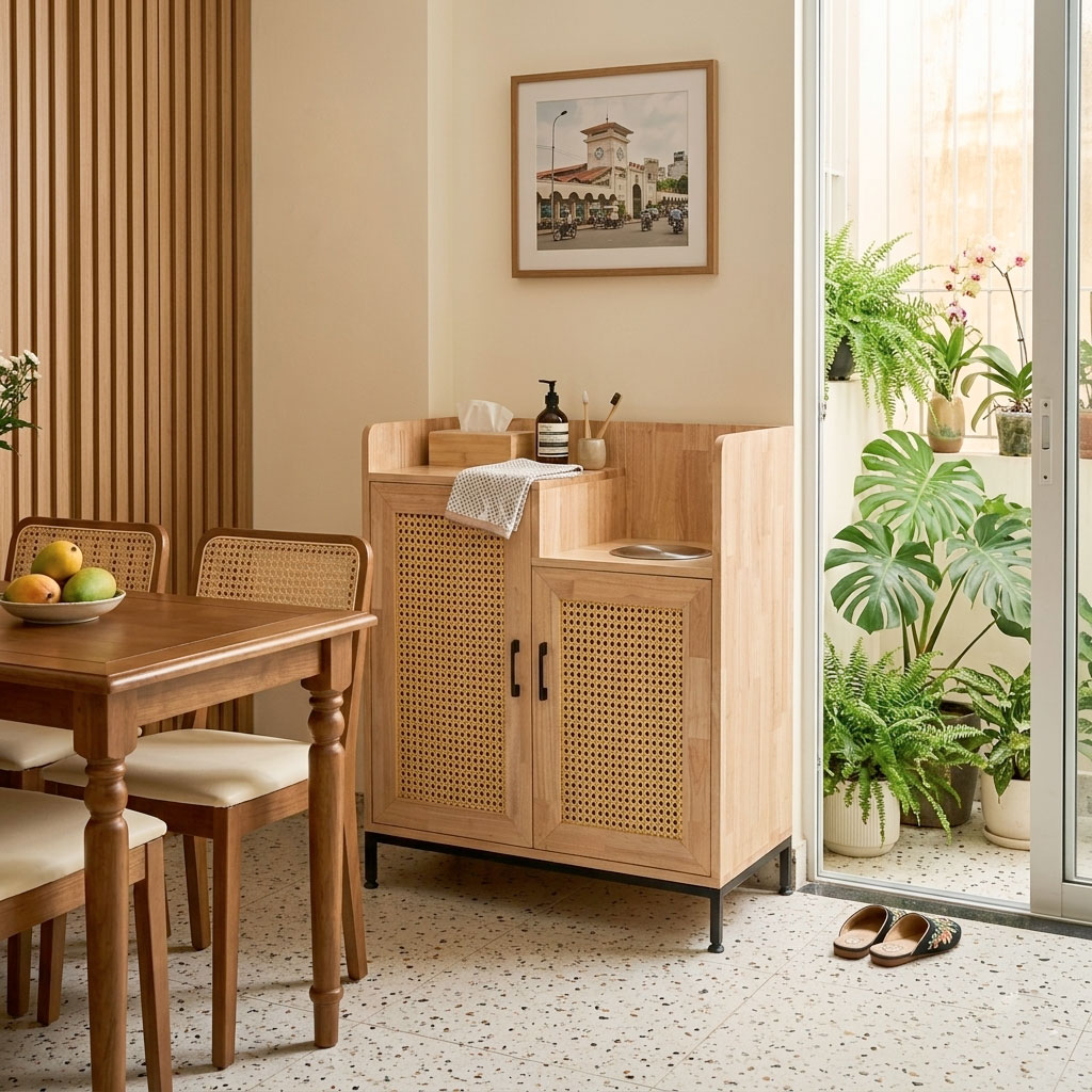 Tủ đựng thùng rác 80x40x95cm gỗ cao su TDR002