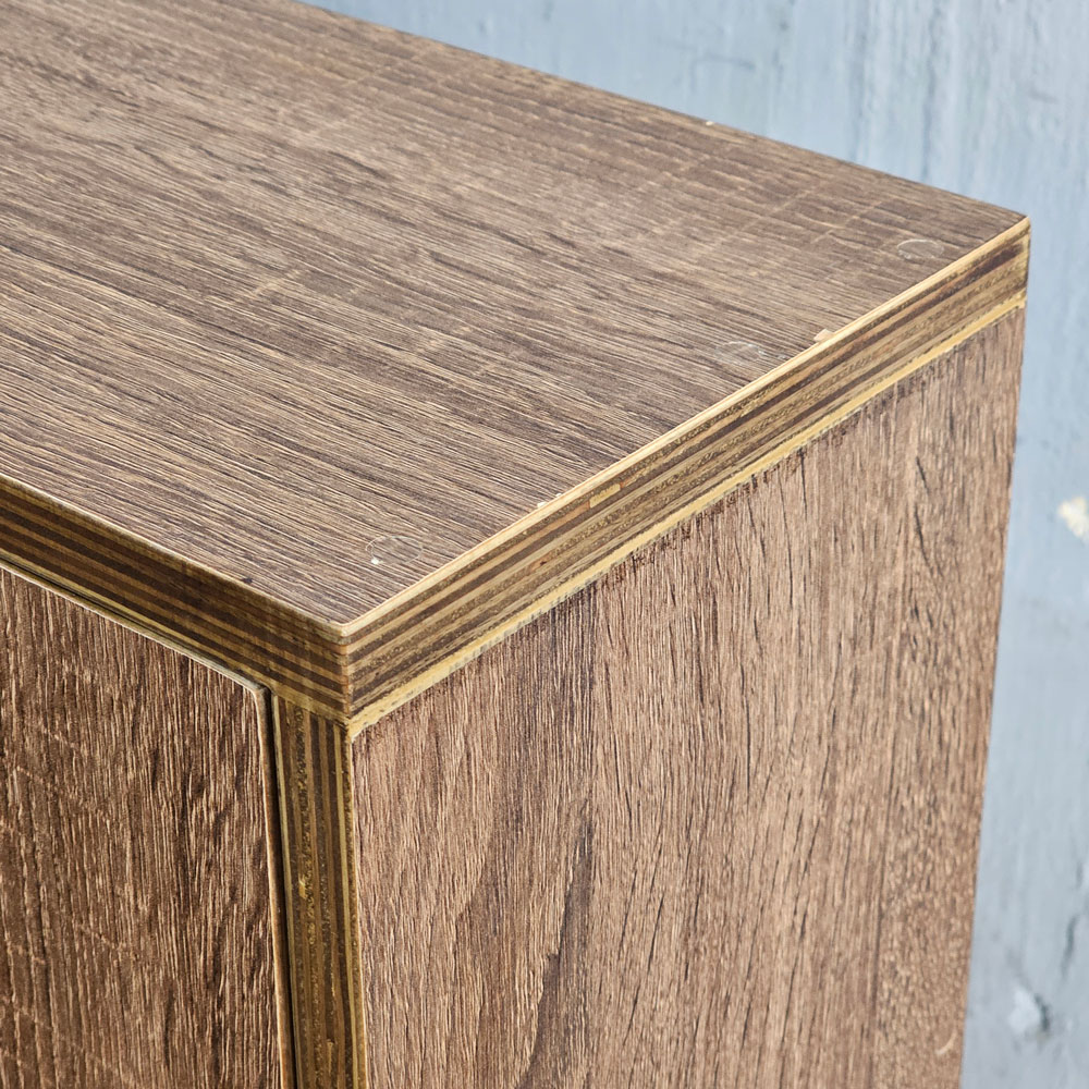 - Chất liệu: Gỗ plywood phủ melamin chuẩn E0, để lộ cạnh, sơn PU chống thấm