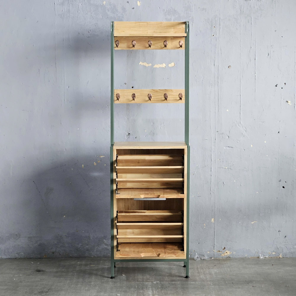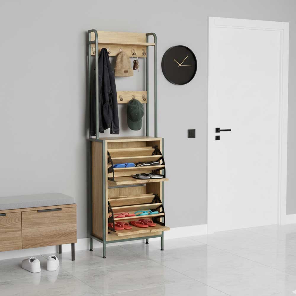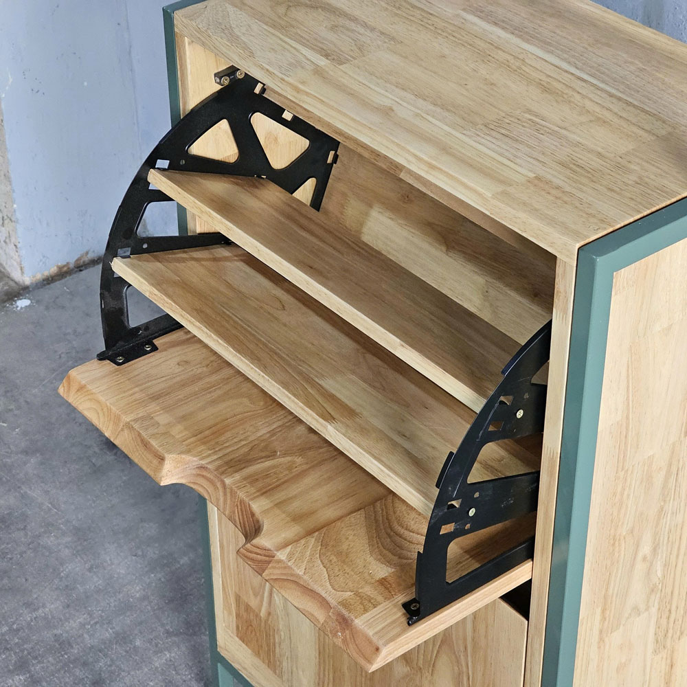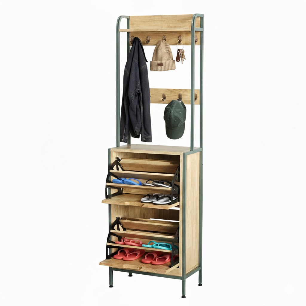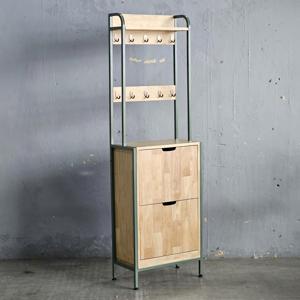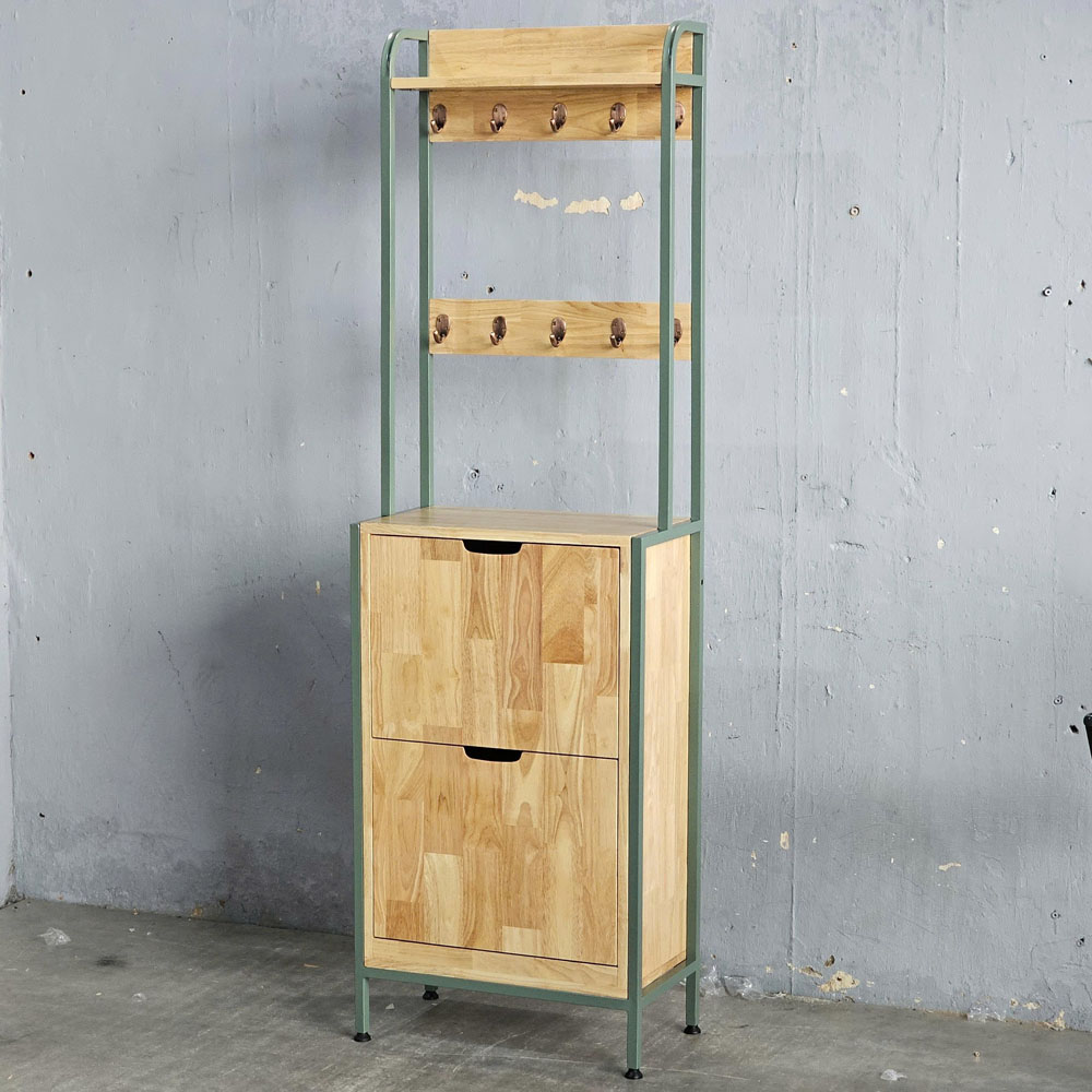 Tủ giày cửa lật kết hợp khung sắt treo đồ gỗ cao su KG68101