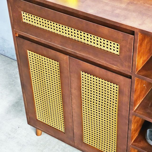 Tủ giày kết hợp kệ để đồ cửa lưới mây KG68055