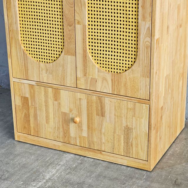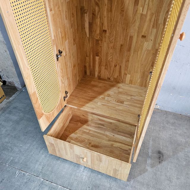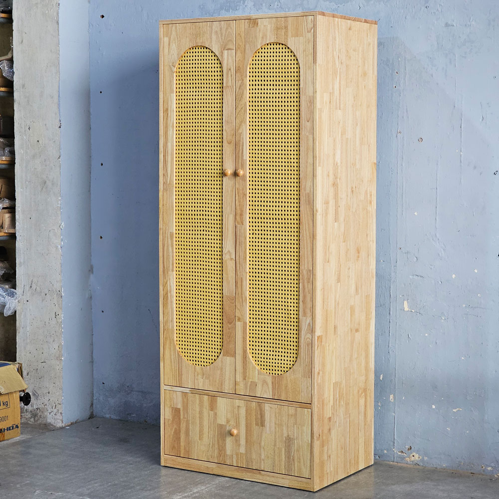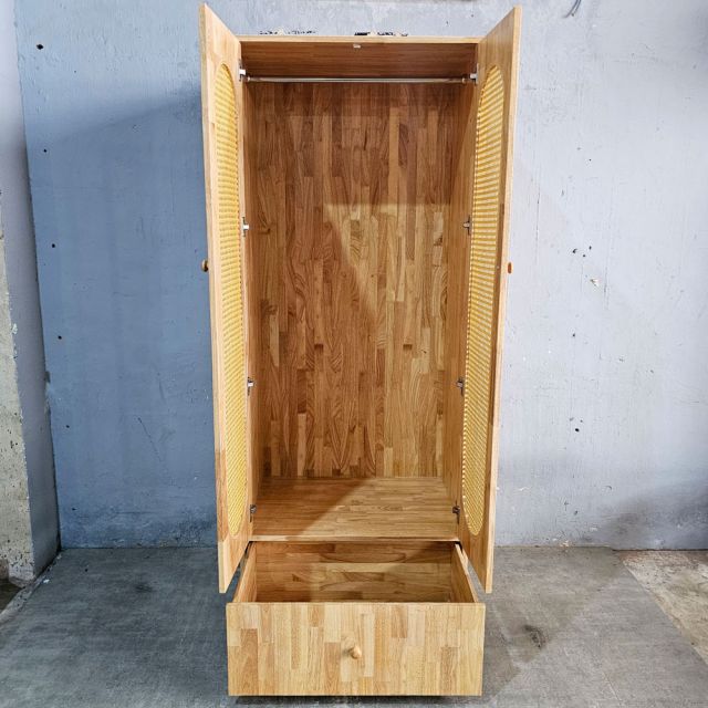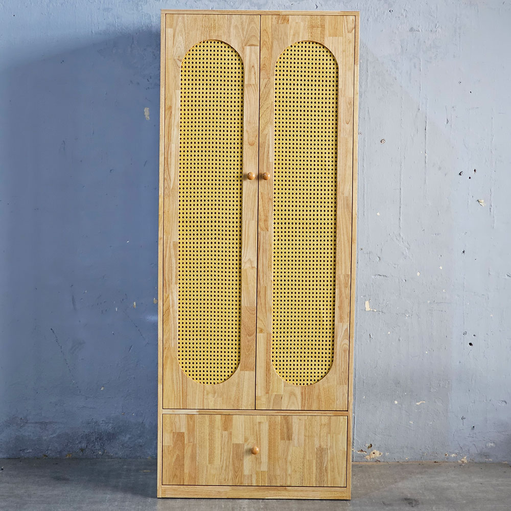 Tủ gỗ cửa lưới mây 80x55x200cm gỗ cao su TQA68082