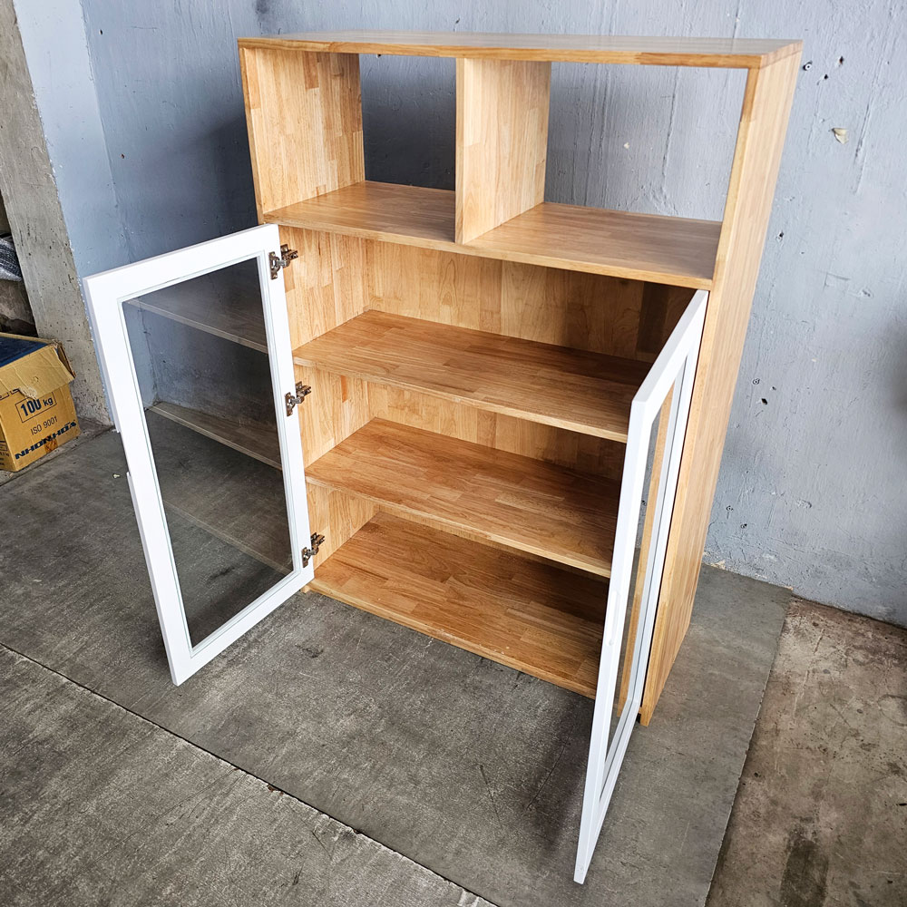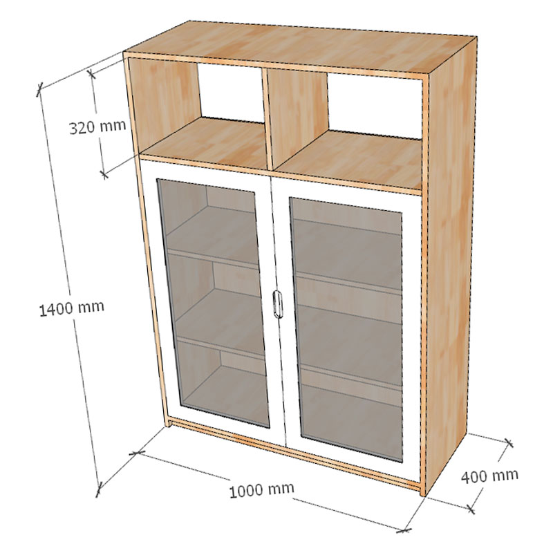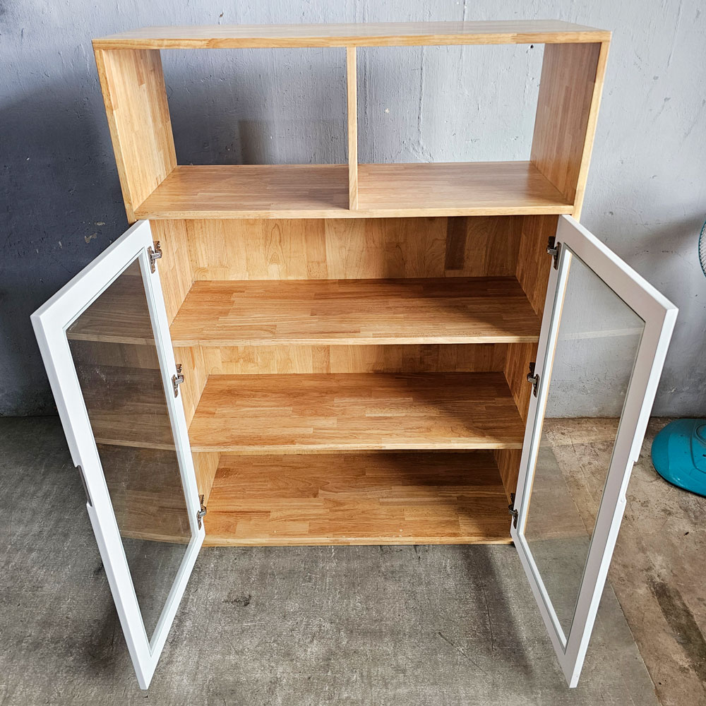 Tủ hồ sơ cửa kính 100x40x140cm gỗ cao su THS68095