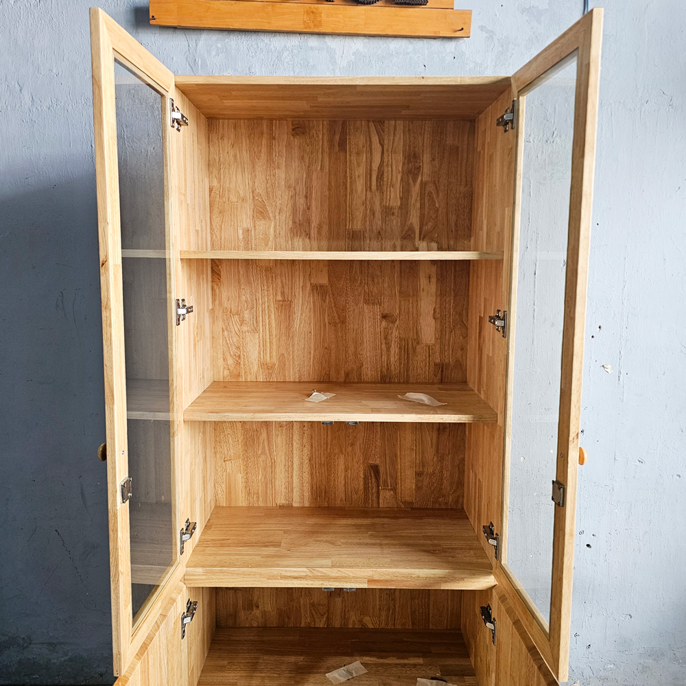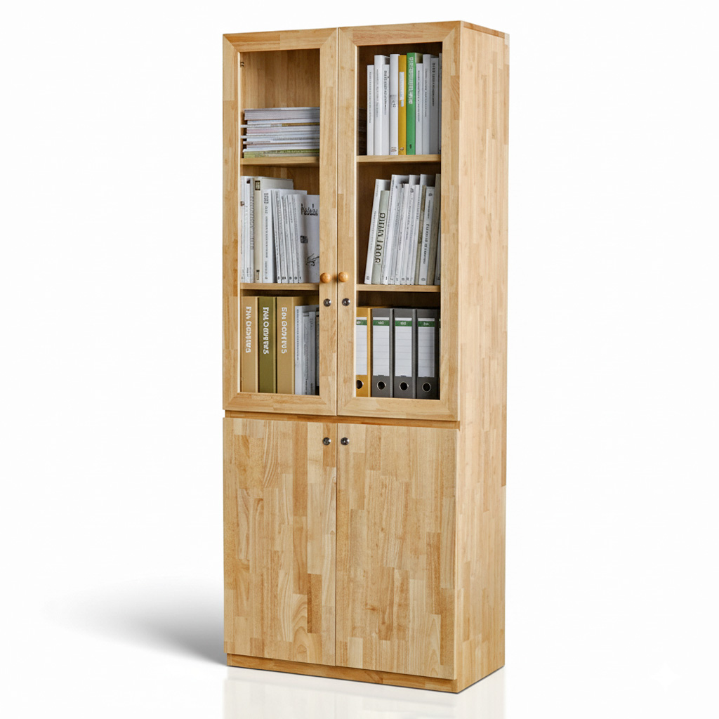 Tủ hồ sơ cửa kính có khóa 80x40x200cm gỗ cao su THS68093