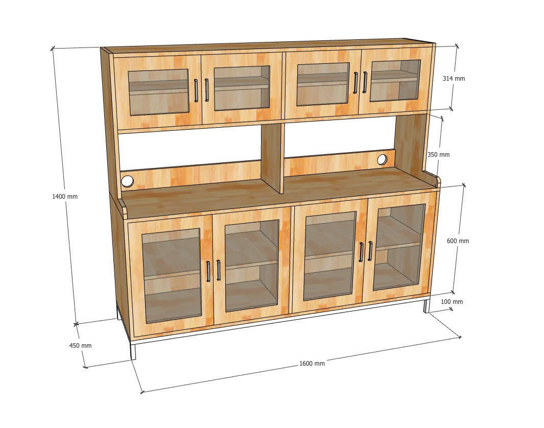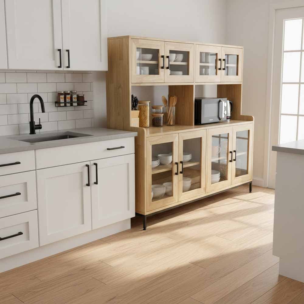 Tủ kệ nhà bếp đôi 160x45x140cm gỗ cao su KB68083