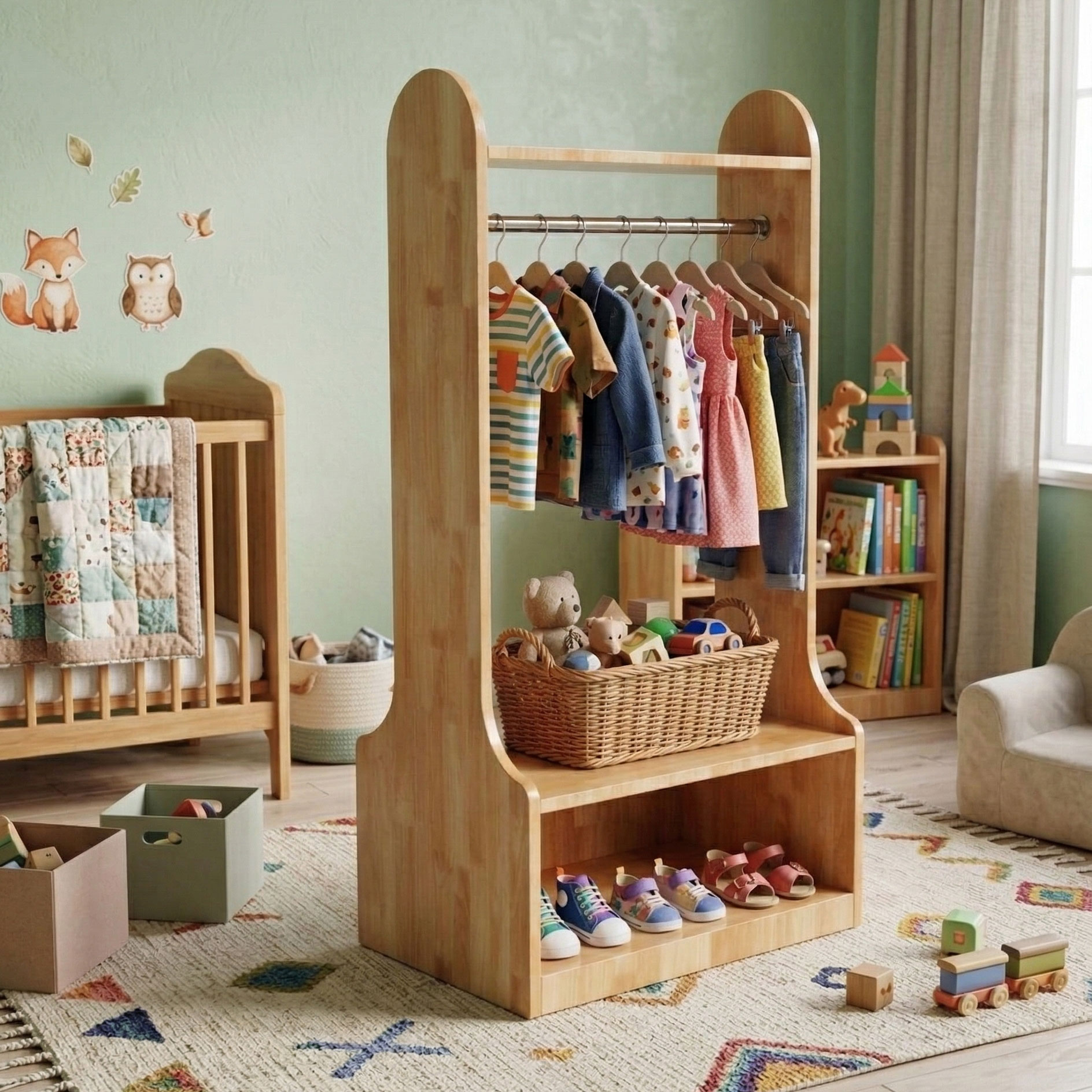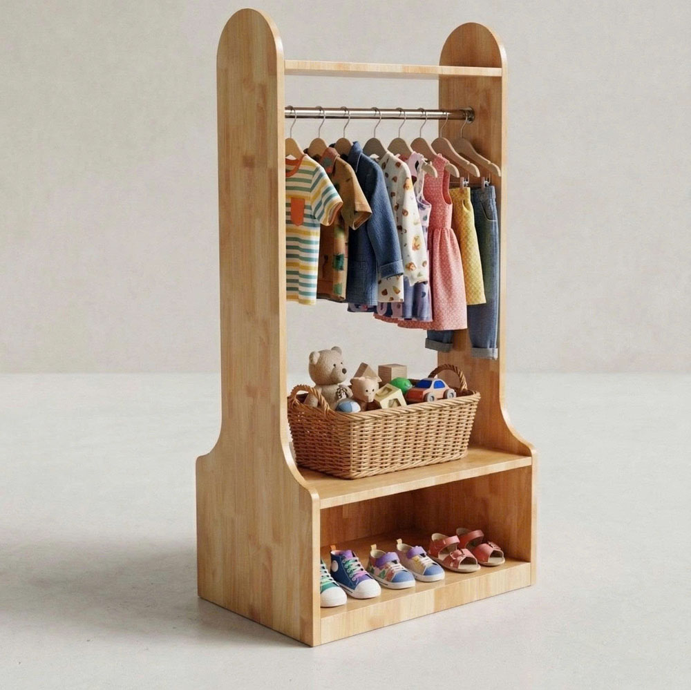 Tủ kệ treo quần áo trẻ em 60x40x120cm gỗ cao su TREM015
