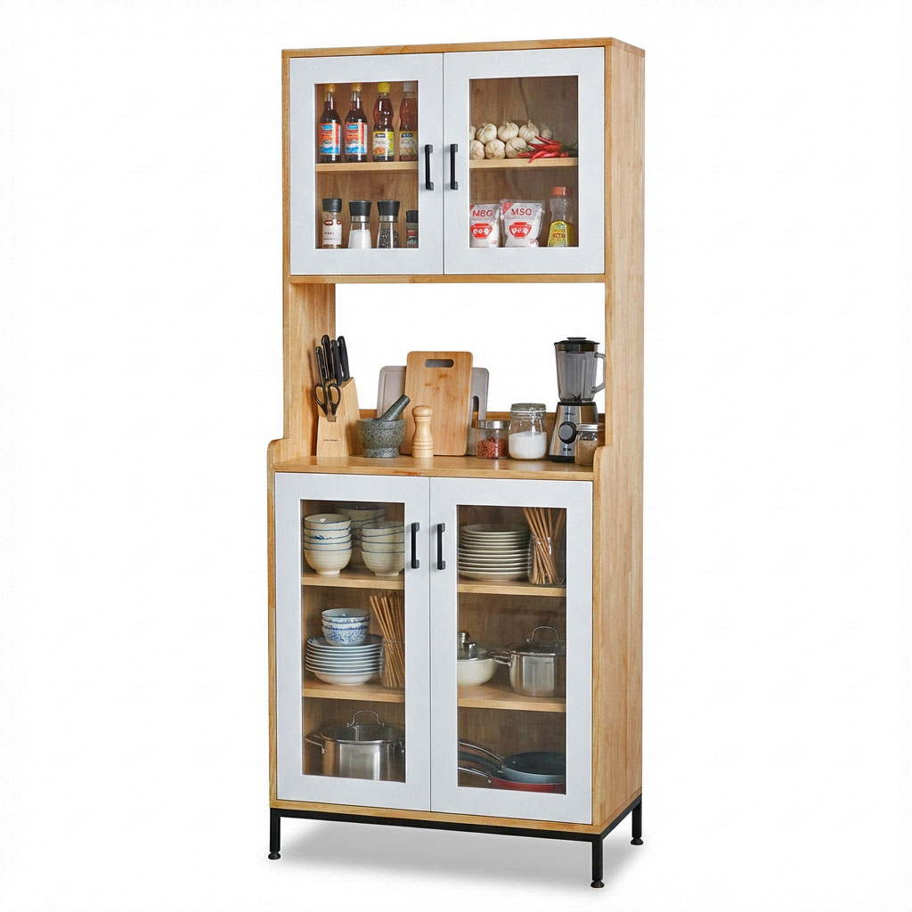 Hệ 2 cửa tủ với chất liệu kính trong suốt vừa giúp bảo quản đồ dùng an toàn, vừa tạo nên một không gian mở, giúp bạn dễ dàng quan sát và lấy đồ khi cần. Bên trong tủ, không gian được phân chia khoa học với 2 tầng ở ngăn trên và 3 tầng ở ngăn dưới, cùng với một ngăn kệ mở ở giữa, giúp bạn sắp xếp đồ dùng một cách gọn gàng và ngăn nắp. Bạn có thể thoải mái cất giữ chén bát, ly tách, đồ dùng nhà bếp hoặc những bộ sưu tập yêu thích của mình.