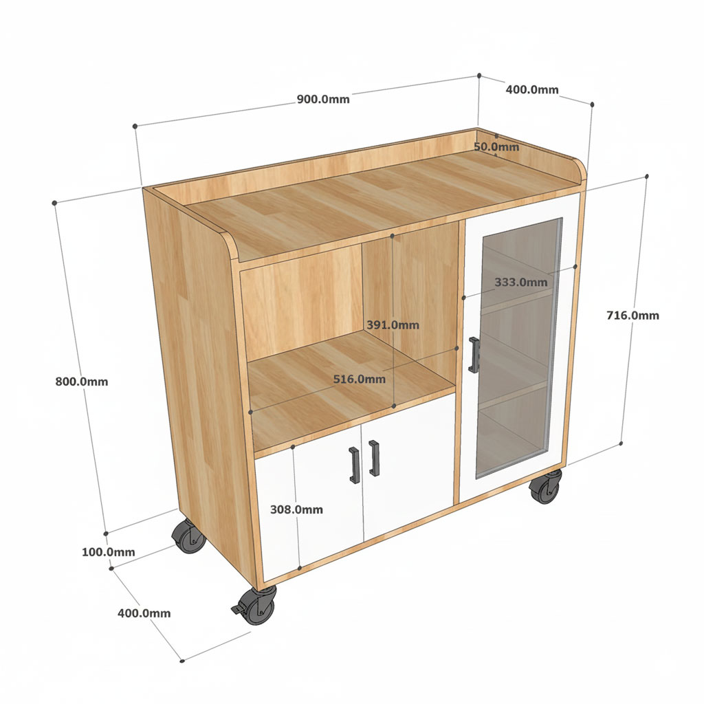 Tủ phòng ăn di động 90x40x90cm gỗ cao su TPA022