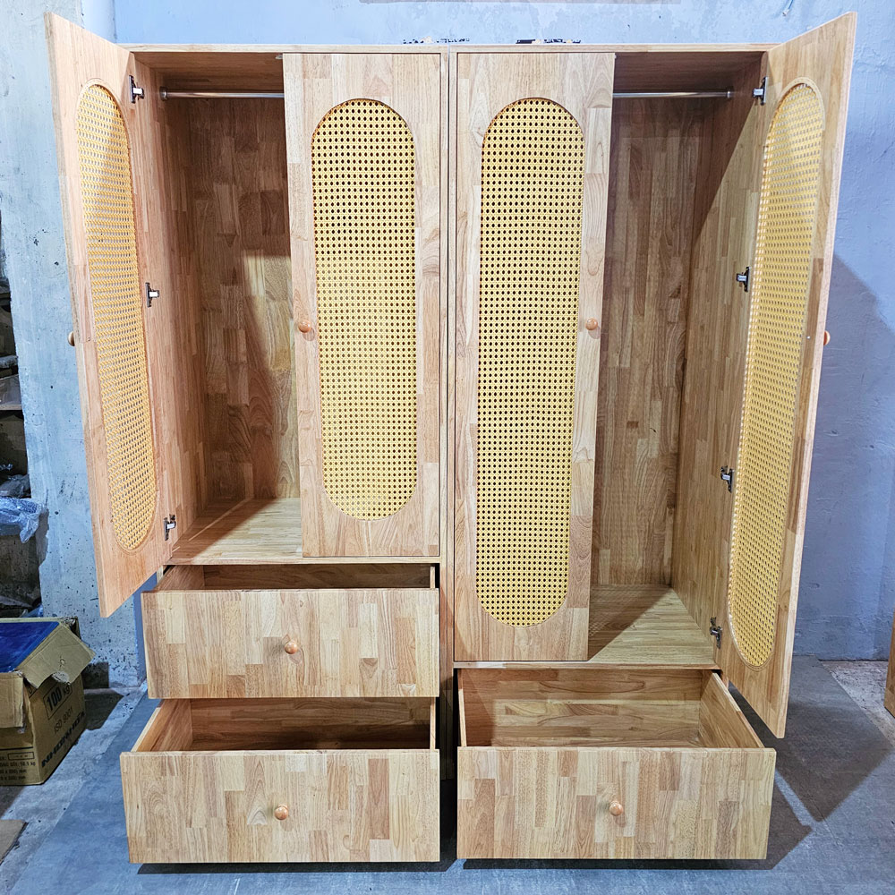 Tủ quần áo 160x55x200cm gỗ cao su TQA68080
