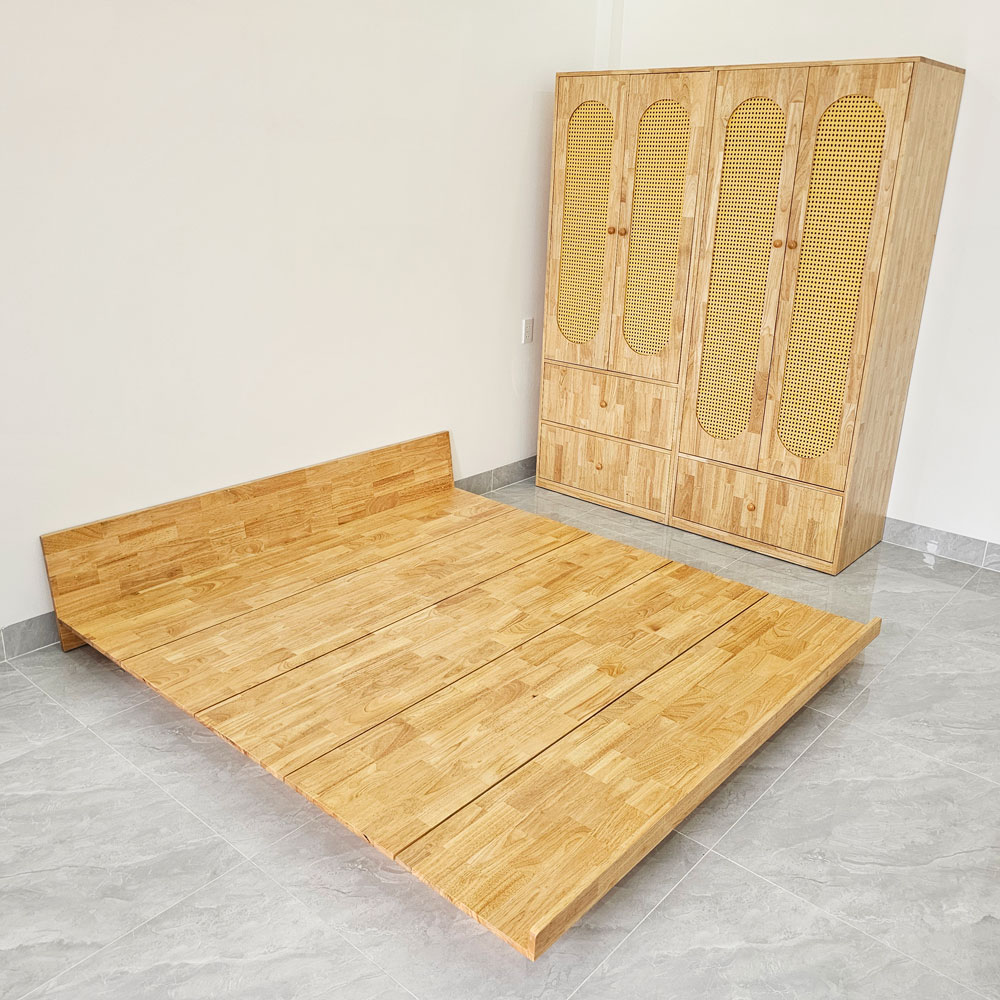 - Chất liệu: Gỗ cao su tiêu chuẩn AA dày 17mm sơn PU