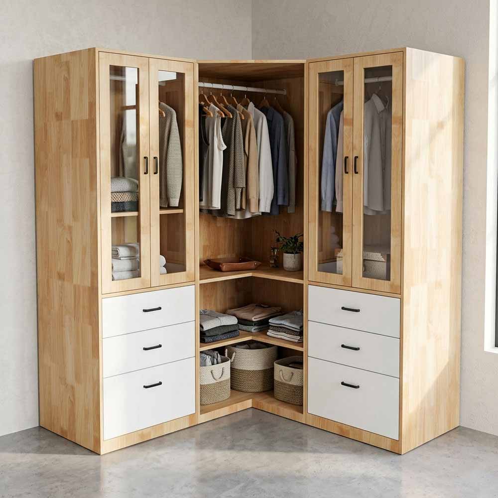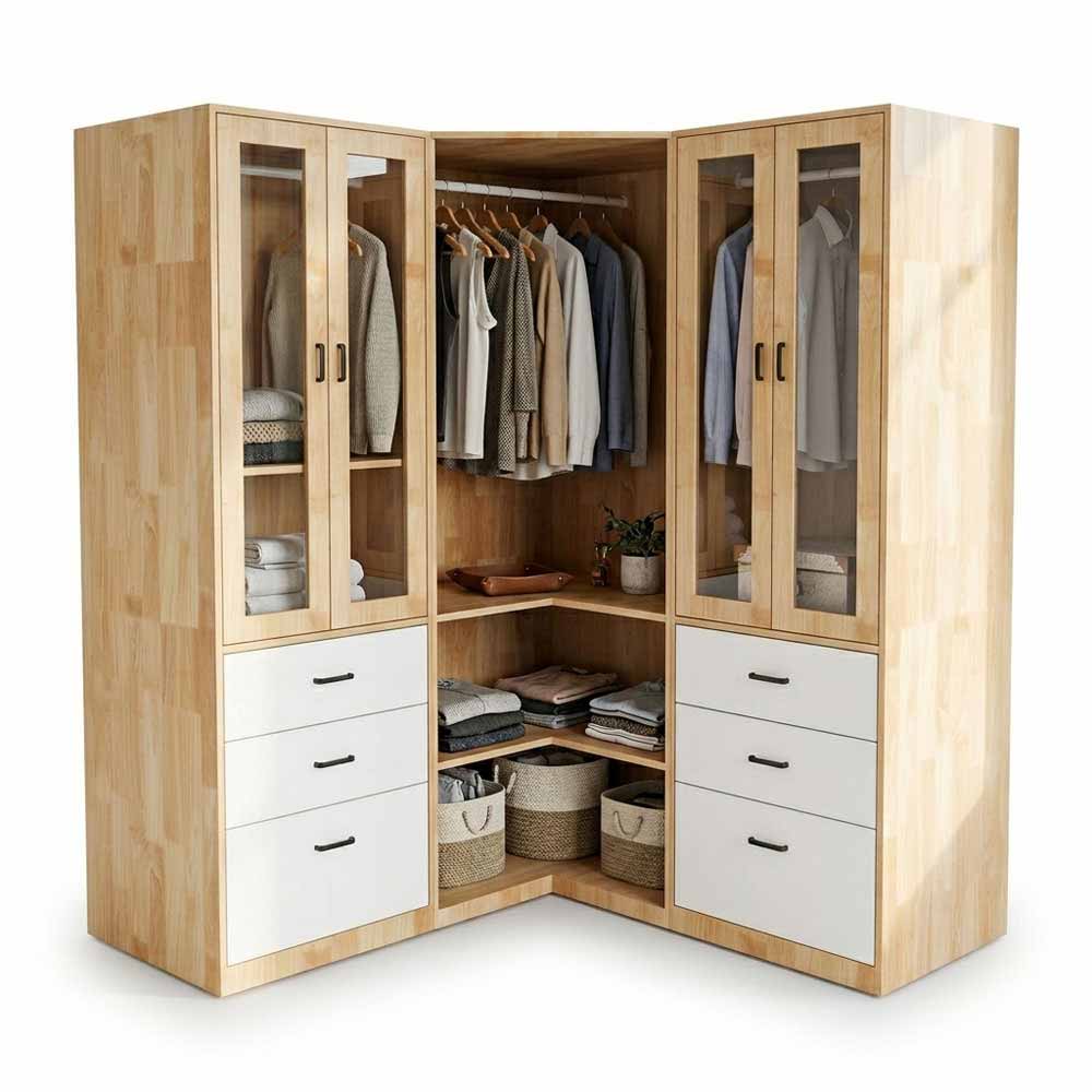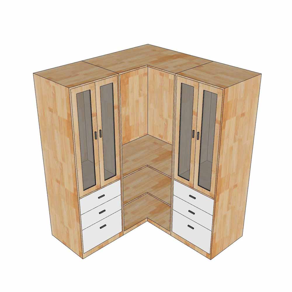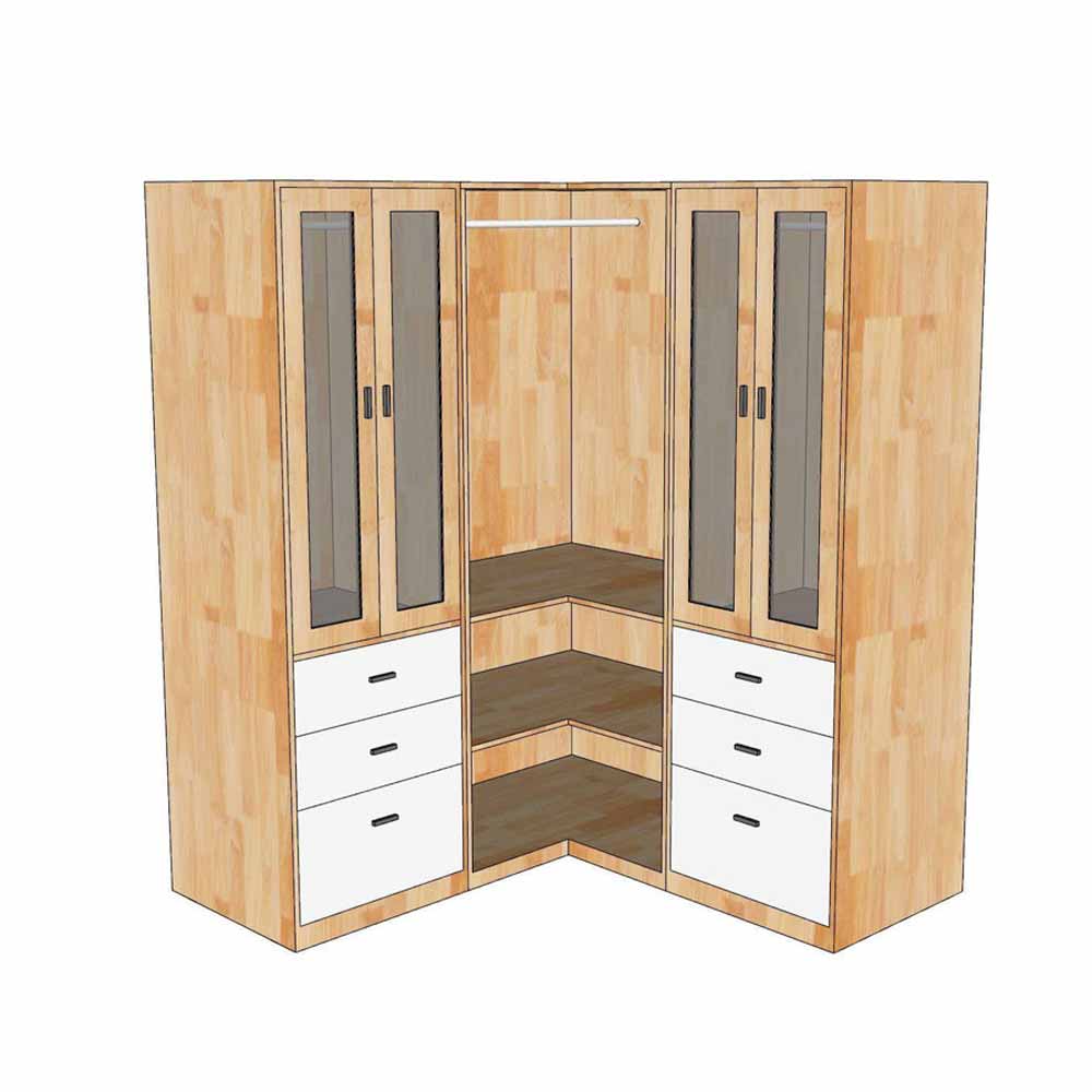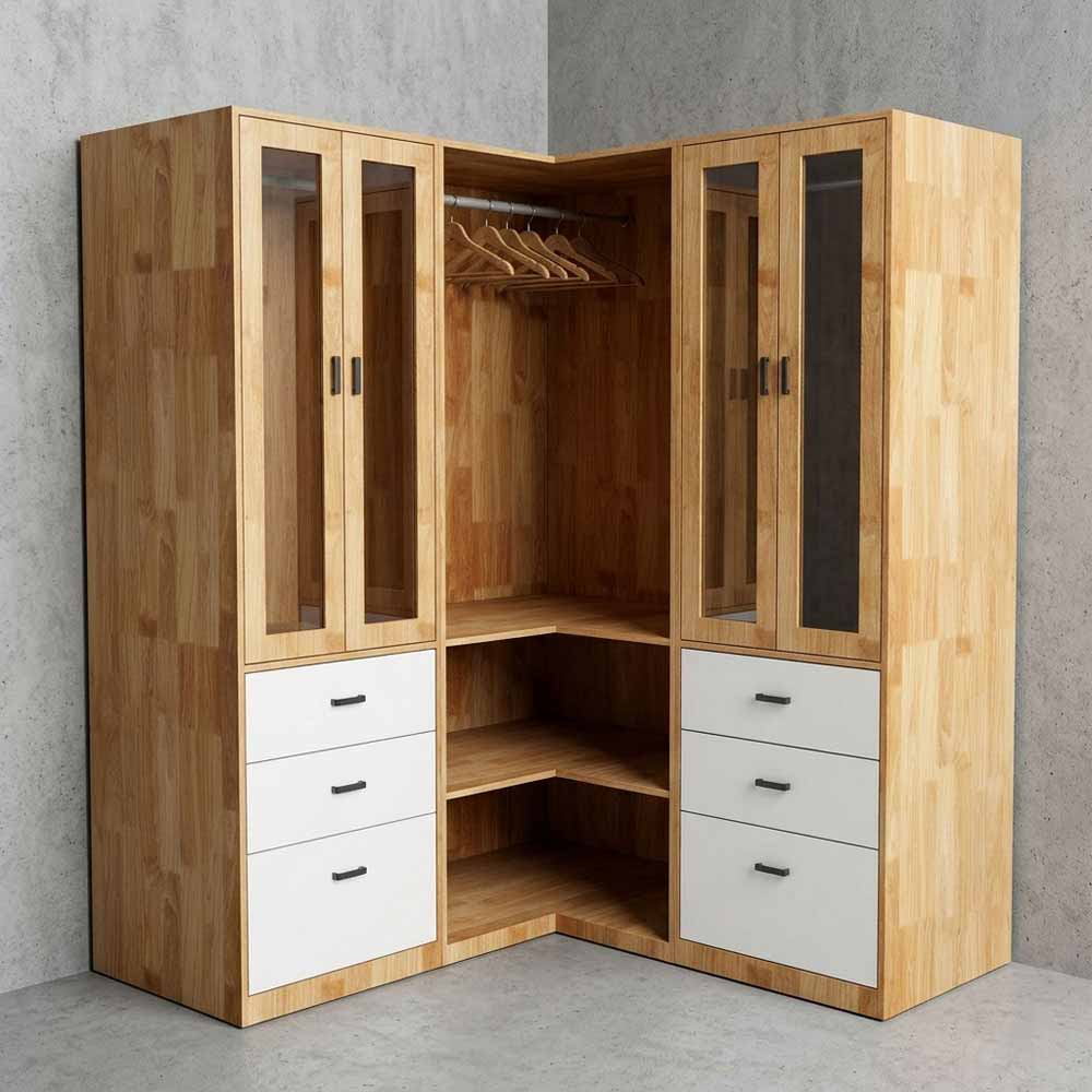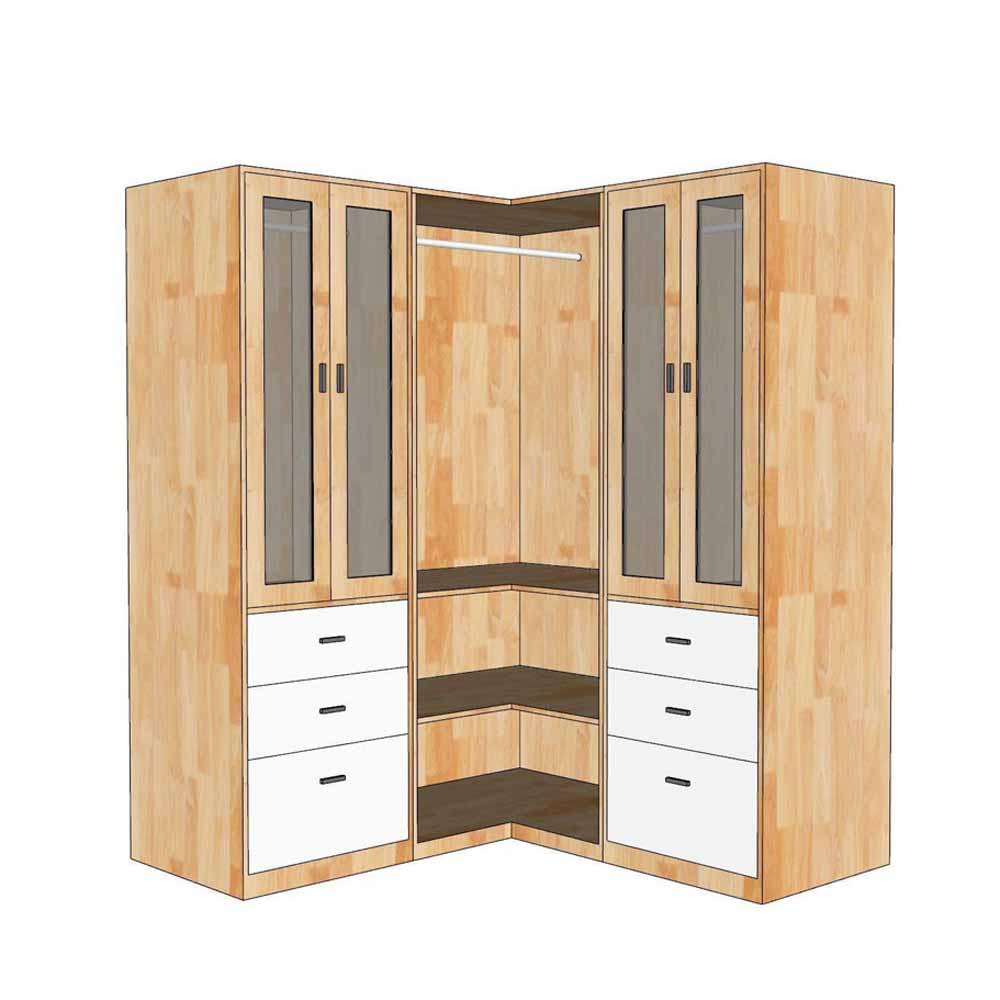 Tủ quần áo góc tường 160x60x160cm gỗ cao su TQA68091