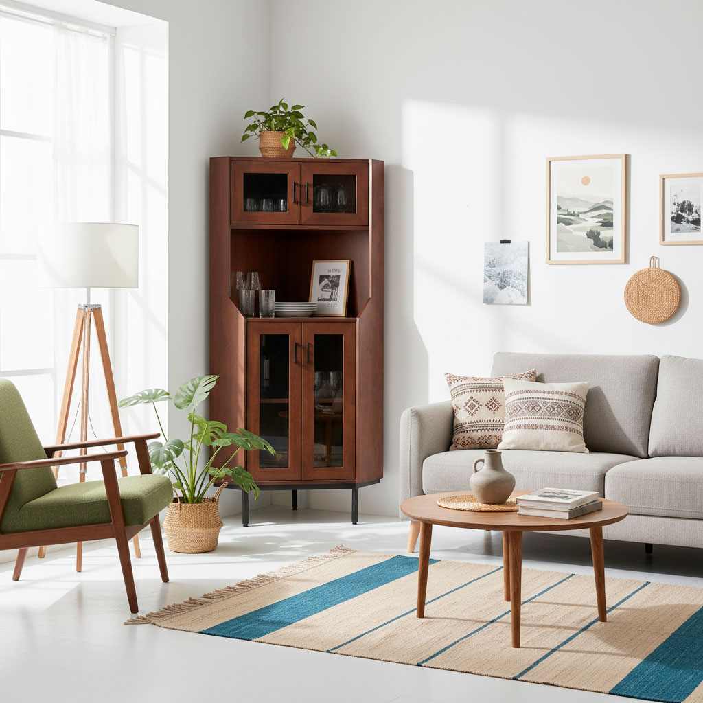 Tủ Rượu góc tường gỗ cao su 60x60x180cm - KGT68035