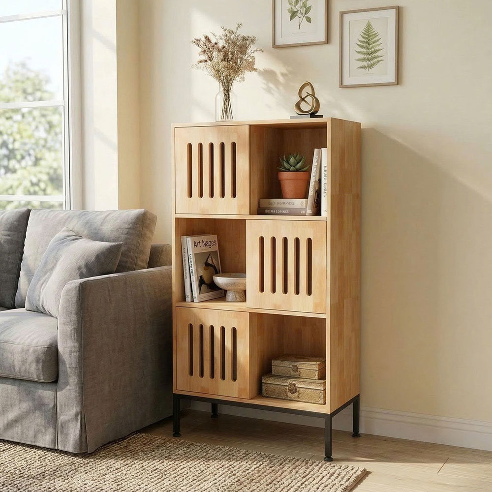 Tủ trang trí 70x35x140cm gỗ cao su chân sắt KTB68261