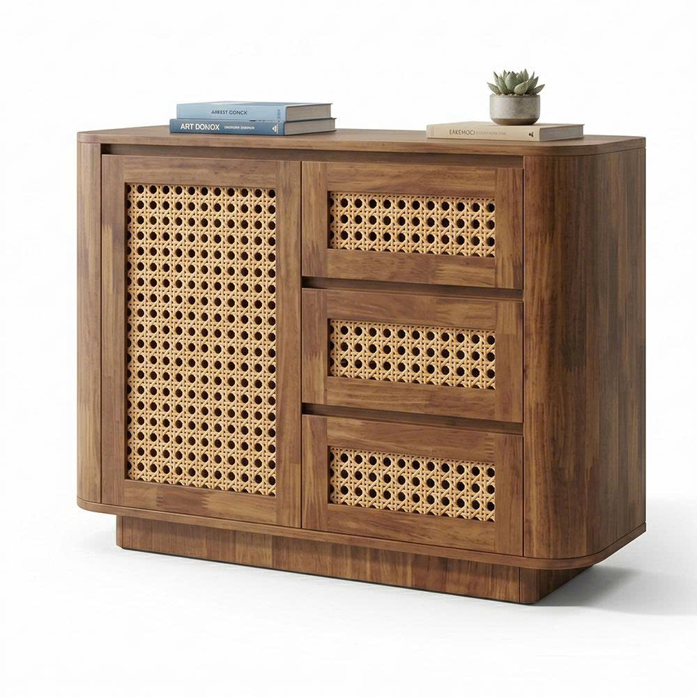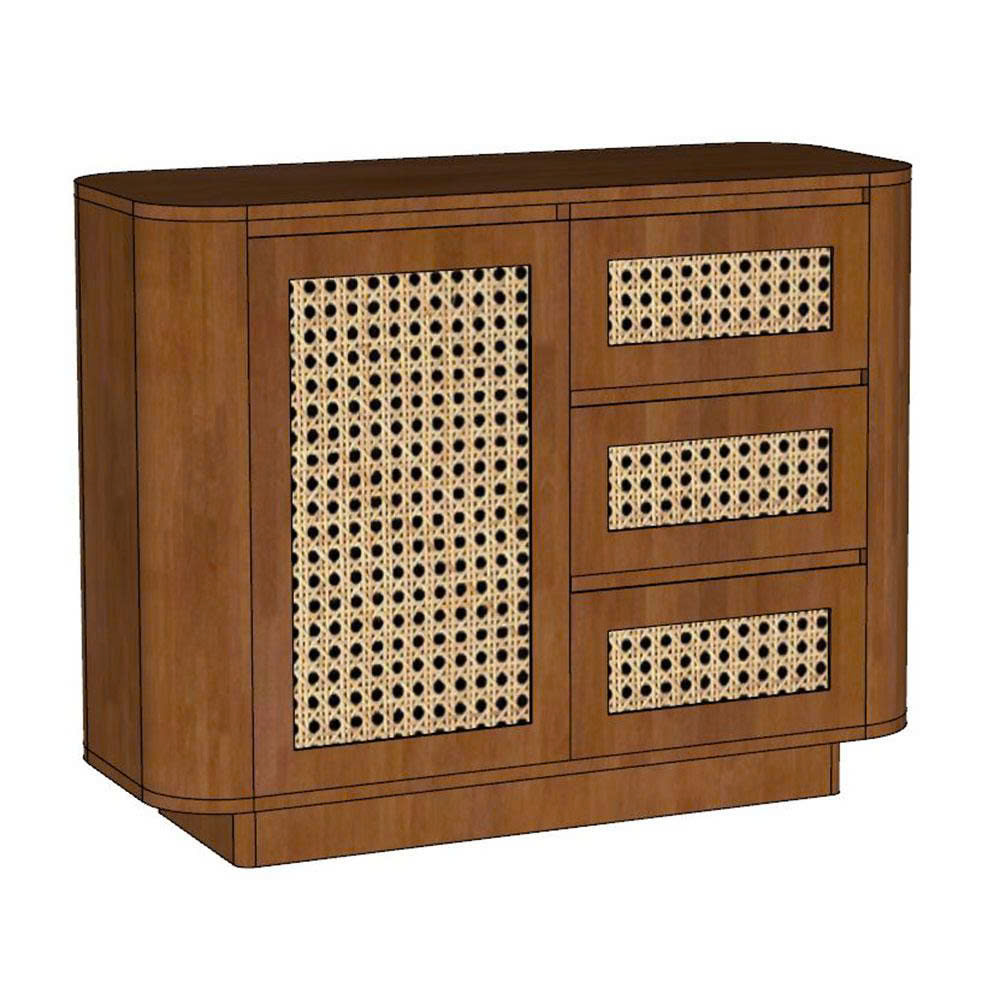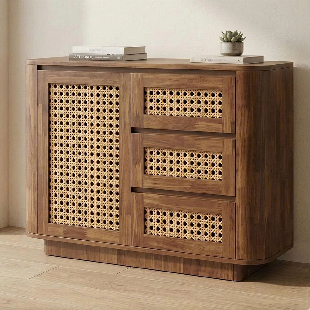 Tủ trang trí JINU 100x40x78cm gỗ cao su cửa lưới mây KTT68078