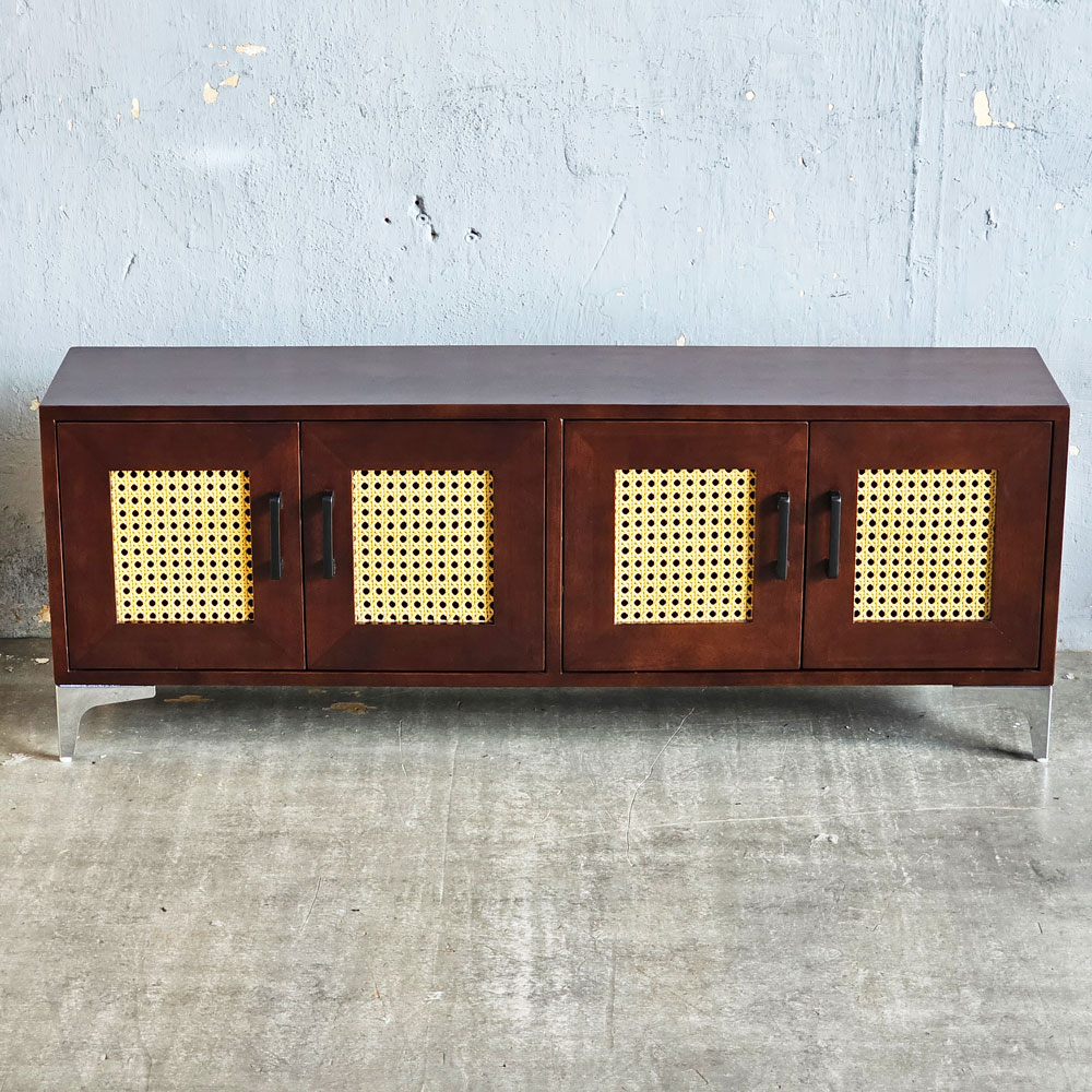 Tủ TV cửa lưới mắt cáo 120x25x45cm gỗ cao su KTV68115