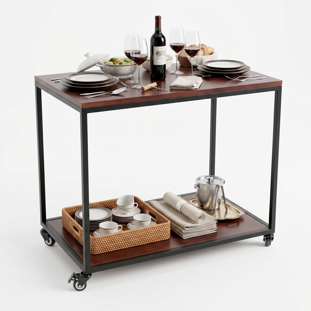 Xe đẩy 2 tầng 82x50x74cm gỗ cao su KB68103
